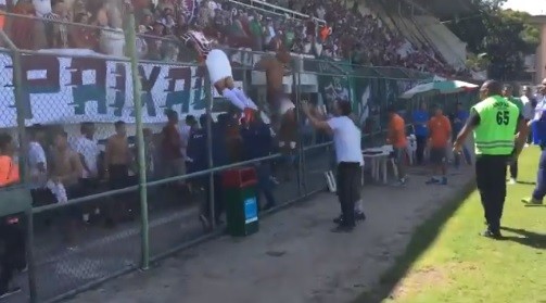 Depois da briga generalizada na final da Taça Rio, após Samuel fazer uma dancinha antes de marcar o quinto gol do Flu na vitória por 5 a 3 sobre o Vasco, os ânimos se excederam novamente neste sábado. Parte dos torcedores do Fluminense invadiu o gramado após o gol de João Pedro. Jogadores do Fluminense e o técnico Léo Percovich tentaram proteger os adversários e conter os tricolores, mas sem êxito. Com a invasão, o árbitro decidiu encerrar o jogo aos 44 da segunda etapa.
