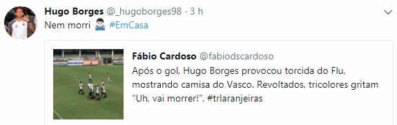 Fonte: Twitter do jogador Hugo Borges