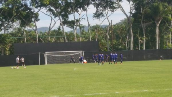 Zagueiros cabeceiam e demais jogadores finalizam neste momento no CT das Vargens