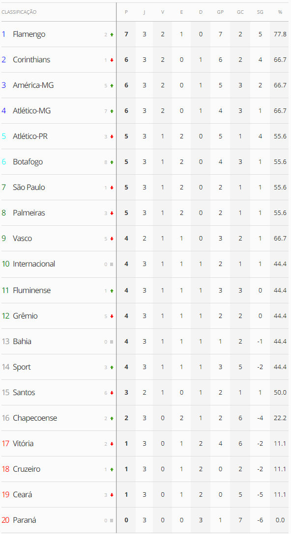 Sem atuar no fim de semana pelo Brasileiro (o jogo contra o Santos, pela 3ª rodada, foi marcado originalmente - e não remarcado - para 16 de julho), o Vasco caiu da 4ª para a 9ª colocação na classificação.