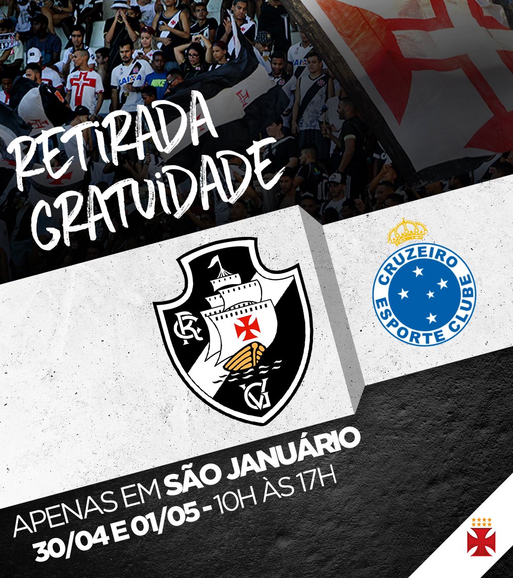 As gratuidades para a partida desta quarta-feira contra o Cruzeiro deverão ser retiradas nas bilheterias de São Januário até as 17 horas de hoje.
