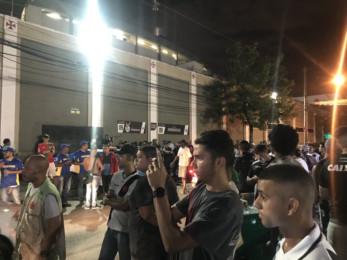 Torcedores aguardam chegada do ônibus do Vasco em frente a São Januário