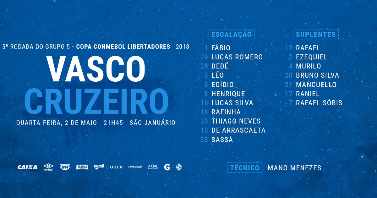 Veja a escalação do Cruzeiro para o jogo contra o Vasco; Dedé é confirmado na zaga