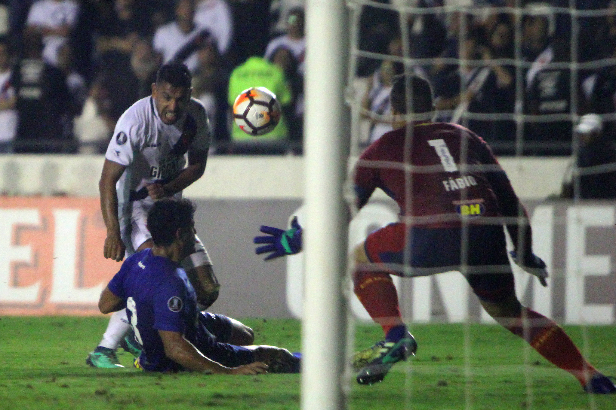 Aos 26 minutos, Andrés Rios foi derrubado na entrada da área. O argentino bateu no canto direito e Fábio desviou para escanteio. Na cobrança, a bola sobrou para o mesmo Rios que isolou a bola.