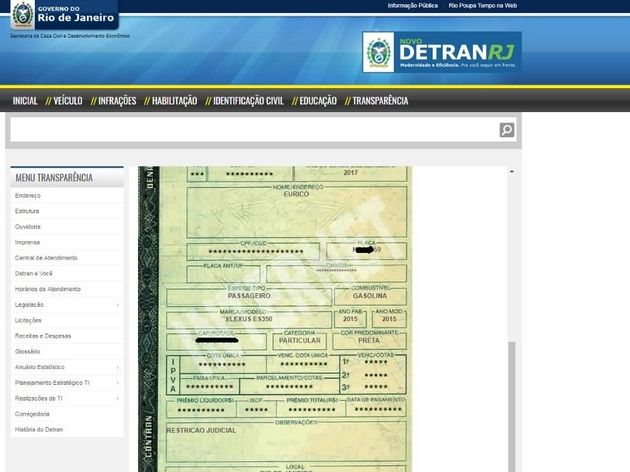 Mais um ponto buscado foi se realmente o carro era de Eurico Miranda. Em uma consulta no site do Detran-RJ, a reportagem, que teve acesso à placa do veículo, colocou no sistema, que gerou o documento do carro pertencente ao ex-presidente do Vasco.