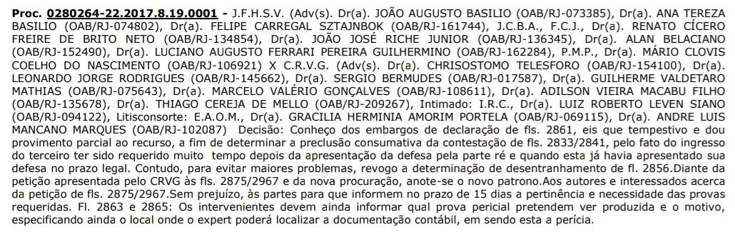 Atenção! Ação com a juíza Maria Cecília Pinto Gonçalves, da 52a Vara Cível do TJRJ, segue correndo. E diante dos últimos ocorridos, nova decisão dela: manda as partes informarem quais provas querem produzir e onde o perito poderá encontrá-las na perícia. Espia a íntegra #lanceVAS