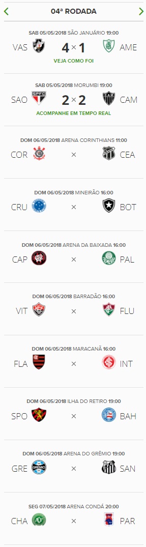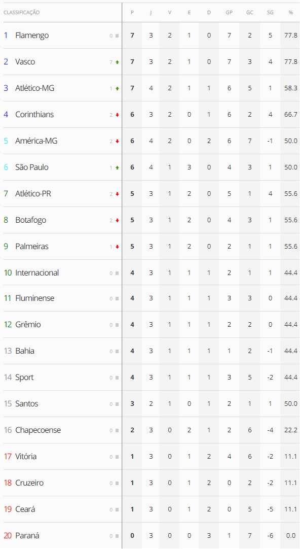 Com a vitória sobre o América-MG por 4 a 1, o Vasco chegou a 7 pontos no Brasieiro e "dormirá" na 2ª colocação na classificação, atrás apenas do Flamengo e, mesmo assim, devido ao saldo de gols. O Gigante da Colina tem 77,8% de aproveitamento, o melhor da competição, ao lado do rival. Deve-se ressaltar que, ao fim da 4ª rodada, o Vasco terá um jogo a menos do que a maioria de seus adversários, pois o duelo contra o Santos só será realizado após a Copa do Mundo.