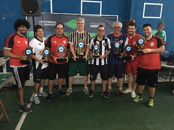 De um lado, Ronald do Flamengo e do outro Paulinho Quartarone do Fluminense. Um dos maiores clássicos do futebol de mesa.