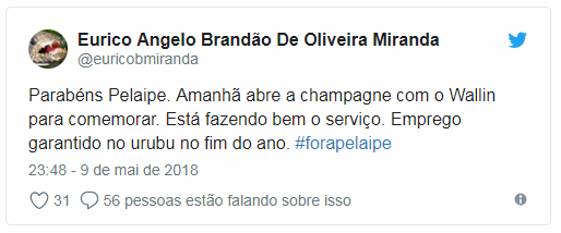 Além disso, Pelaipe ainda convive com um lobby interno por Rodrigo Caetano, que já trabalhou no clube e foi demitido este ano do Rubro-Negro. O executivo possui uma relação estreita com o presidente Alexandre Campello, que não esconde sua admiração pelo profissional.