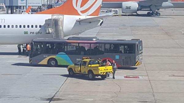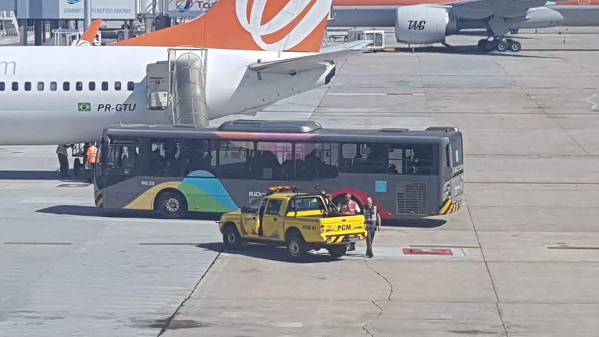 Este é o ônibus que levou a delegação do Vasco. Os demais passageiros saíram normalmente pelo túnel. Foto do Edson Viana. #gevas