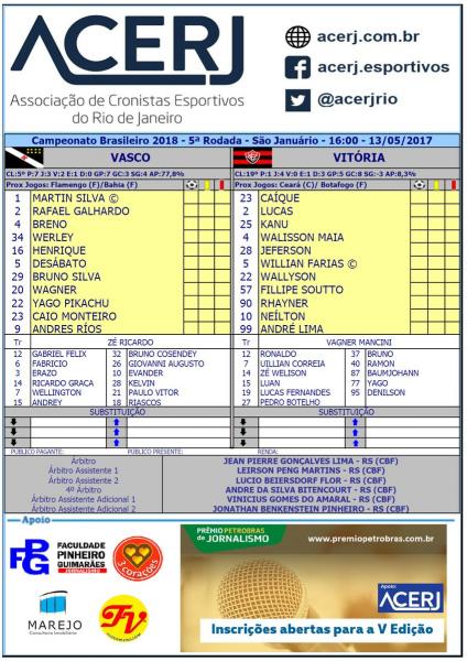 13/05/18 - Vitória leva vantagem em confrontos contra o Vasco