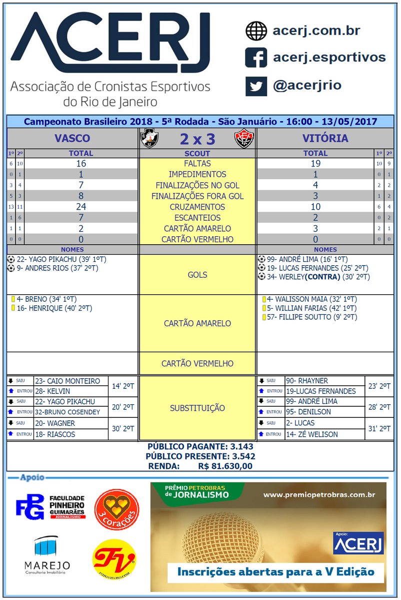 13/05/18 - Veja os números do 1º tempo de Vasco x Vitória