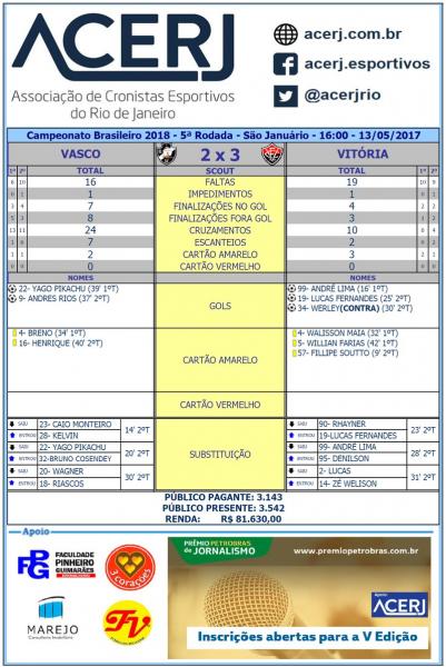 Confira as estatísticas de Vasco 2 x 3 Vitória