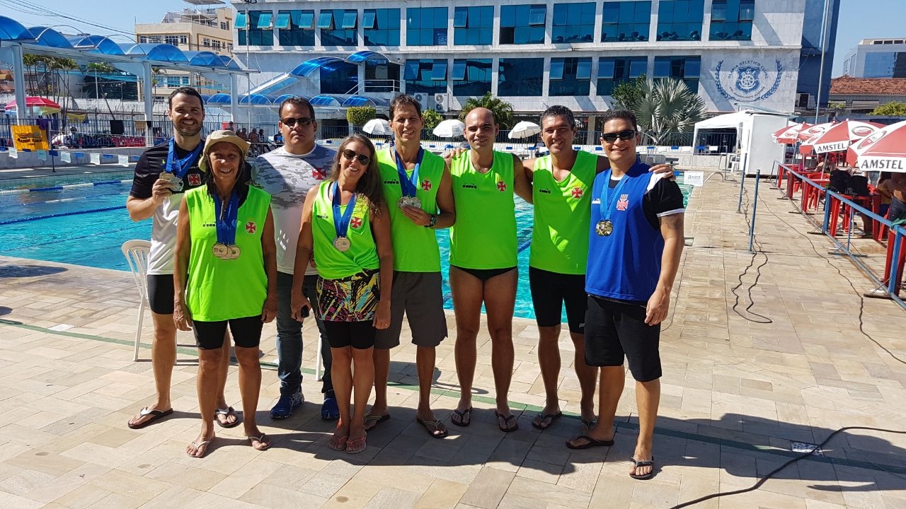 A equipe de natação master conquistou no sábado (12/05) 18 medalhas de ouro, na 3ª Etapa do Circuito Estadual disputada no Parque Aquático do Olaria Atlético Clube. Além das provas individuais, os vascaínos conquistaram o ouro no revezamento 4 x 50m medley misto, na classe 160+ com Júlio, Dayse, Tiago e Lilian.