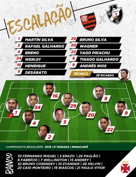 Confira a escalação do Vasco; Thiago Galhardo é titular e Wellington segue como reserva