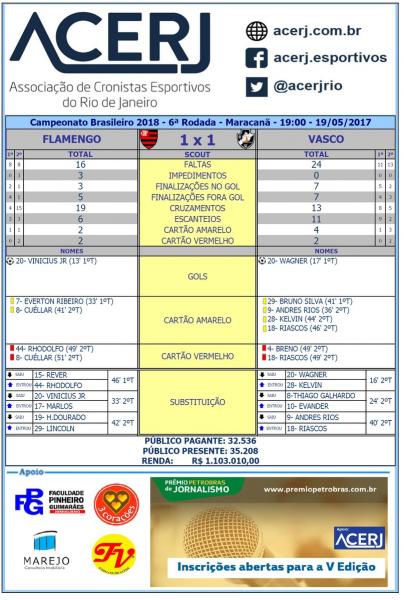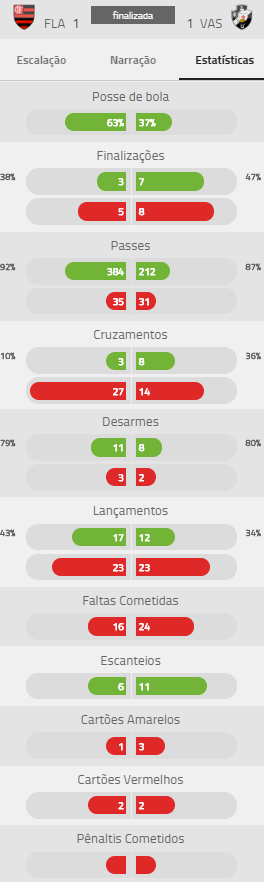 Confira estatísticas de Urubu 1 x 1 Vasco