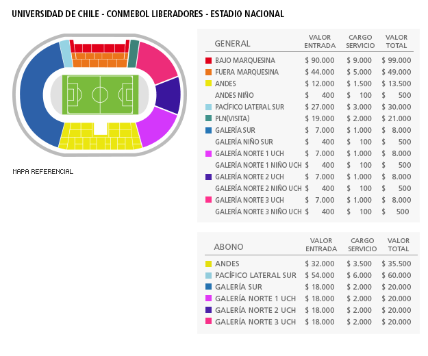 IMPORTANTE: Si adquieres más de un E-Ticket recuerda imprimir cada uno en forma separada. Cada E-Ticket o Ticket tiene un código de barra único. No adquiera ni compre el E-Ticket o Tickets por parte de revendedores, ya que de existir varios ejemplares del mismo E-Ticket o Tickets se le denegará el acceso al evento. El E-Ticket y Ticket en si son intransferibles y los datos contenidos en el deben corresponder al de la persona que ingresa al estadio en ese momento el que además se debe comprobar con la cédula de identidad.