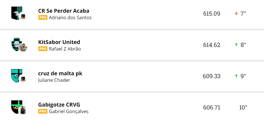 24/04/18 - Cartola FC: Confira a classificação da Liga NETVASCO após a 2ª rodada