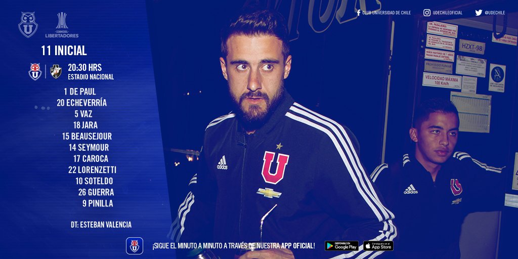 Veja a escalação da Universidad de Chile para o jogo contra o Vasco