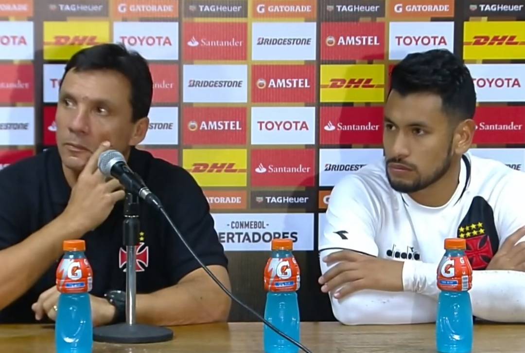 Andrés Ríos concedeu coletiva ao lado de Zé Ricardo após a vitória sobre a La U: