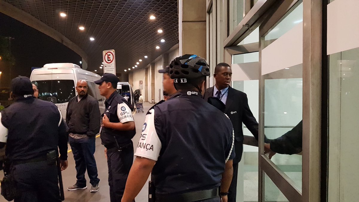 Seguranças do Vasco já deixaram o saguão de desembarque internacional do Galeão também. Quarteto driblou a torcida #lanceVAS