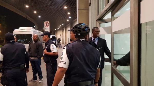 Segurança do Galeão avisa aos torcedores que o quarteto do Vasco deixou o aeroporto por volta das 3h por uma saída alternativa #lanceVAS