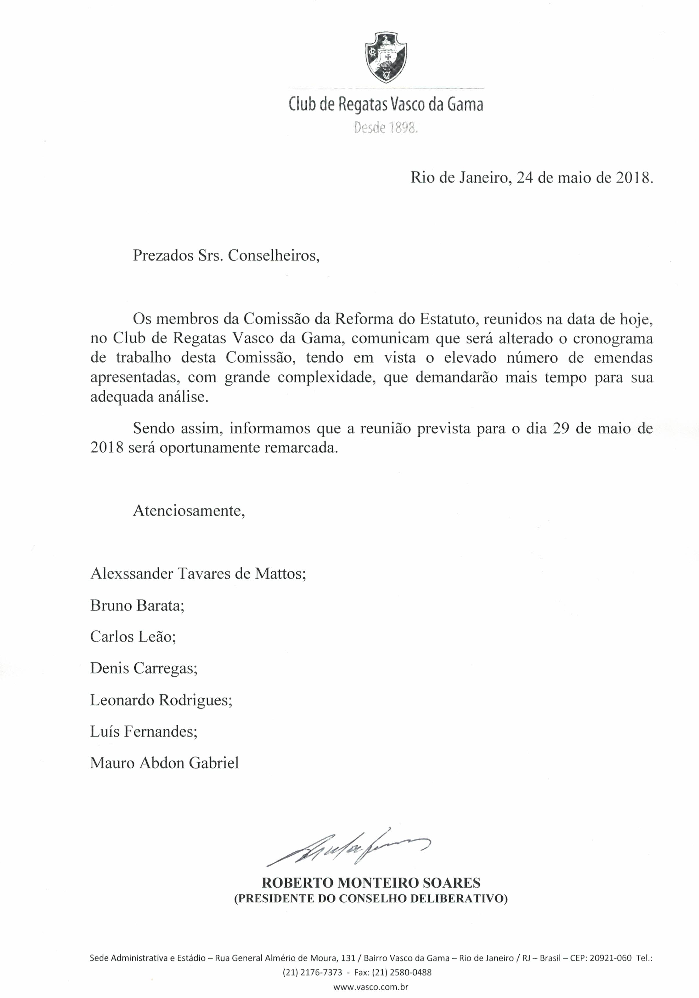 Comissão da Reforma do Estatuto informa alteração de cronograma de trabalho