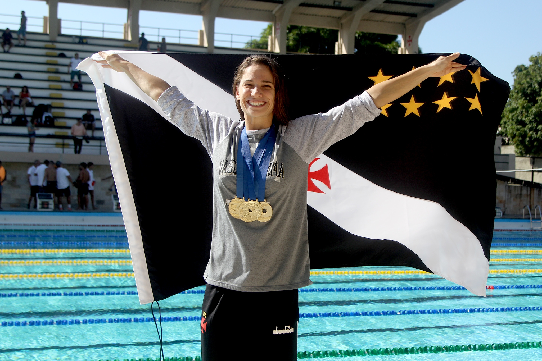 - Foi uma experiência espetacular voltar a nadar nesse Parque Aquático 30 anos depois de conquistar meu último Campeonato Brasileiro de natação, competindo pelo Vasco da Gama. O complexo está lindo e todos os vascaínos devem estar orgulhosos. Grandes performances aconteceram nesse fim de semana no circuito da FARJ. Parabéns ao Vice-Presidente Tiago SantAnna, ao treinador Márcio Santos e ao Presidente da FARJ, Celso Oliveira, por trazer para o Vasco essa competição do circuito de natação oficial do Rio de Janeiro - disse Madruga.