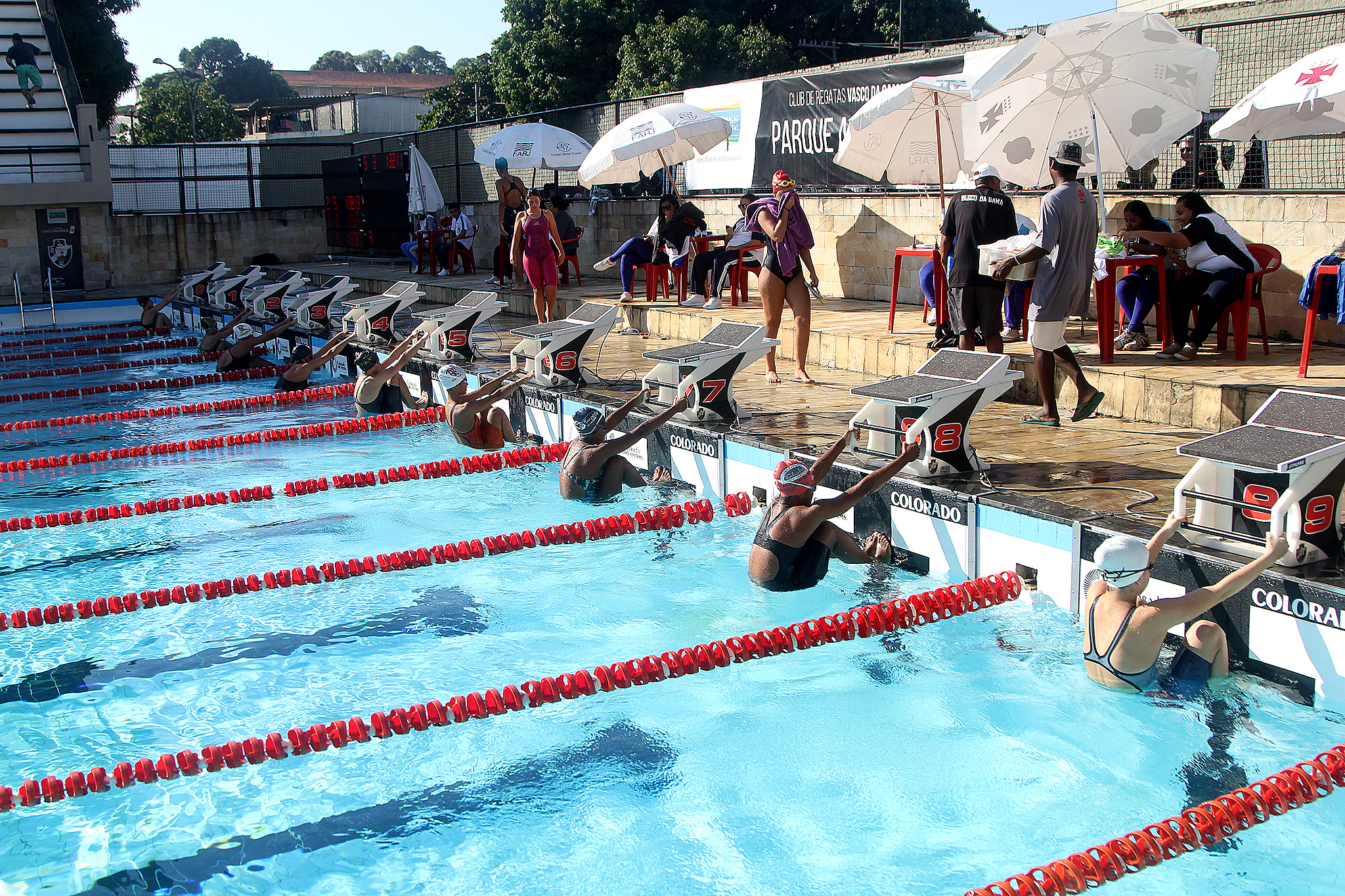 Natação: Veja galeria de fotos da 1ª competição no Parque Aquático do Vasco em 6 anos