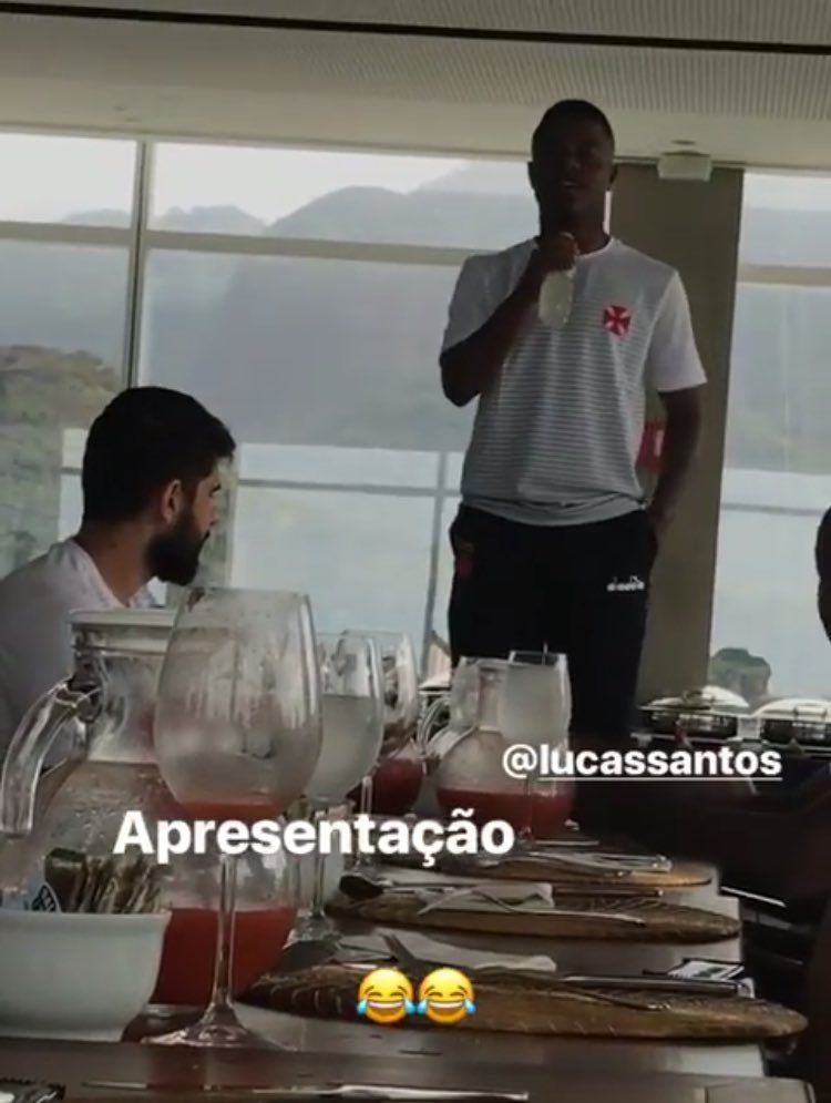 Lucas Santos foi relacionado pela primeira vez para uma partida de Brasileirão e... teve que se apresentar na frente do elenco #lanceVAS