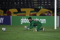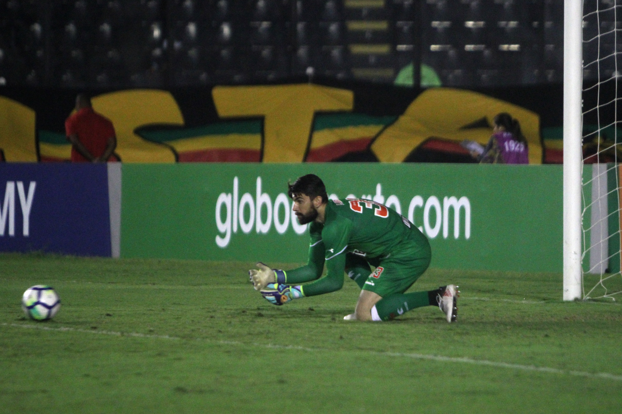 Aos 12 minutos, o goleiro Thiago Rodrigues saiu com precisão para impedir que o lançamento chegasse ao atacante Riascos.