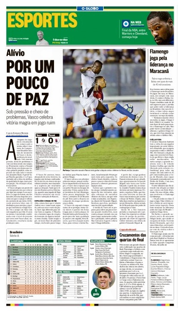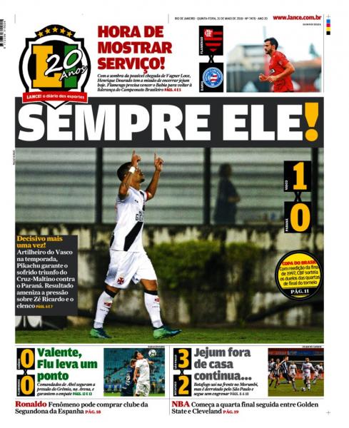 Veja como a imprensa destacou a vitória do Vasco sobre o Paraná