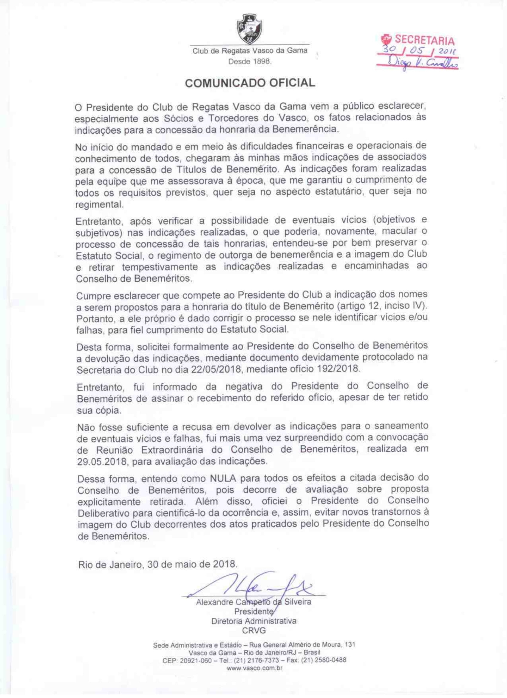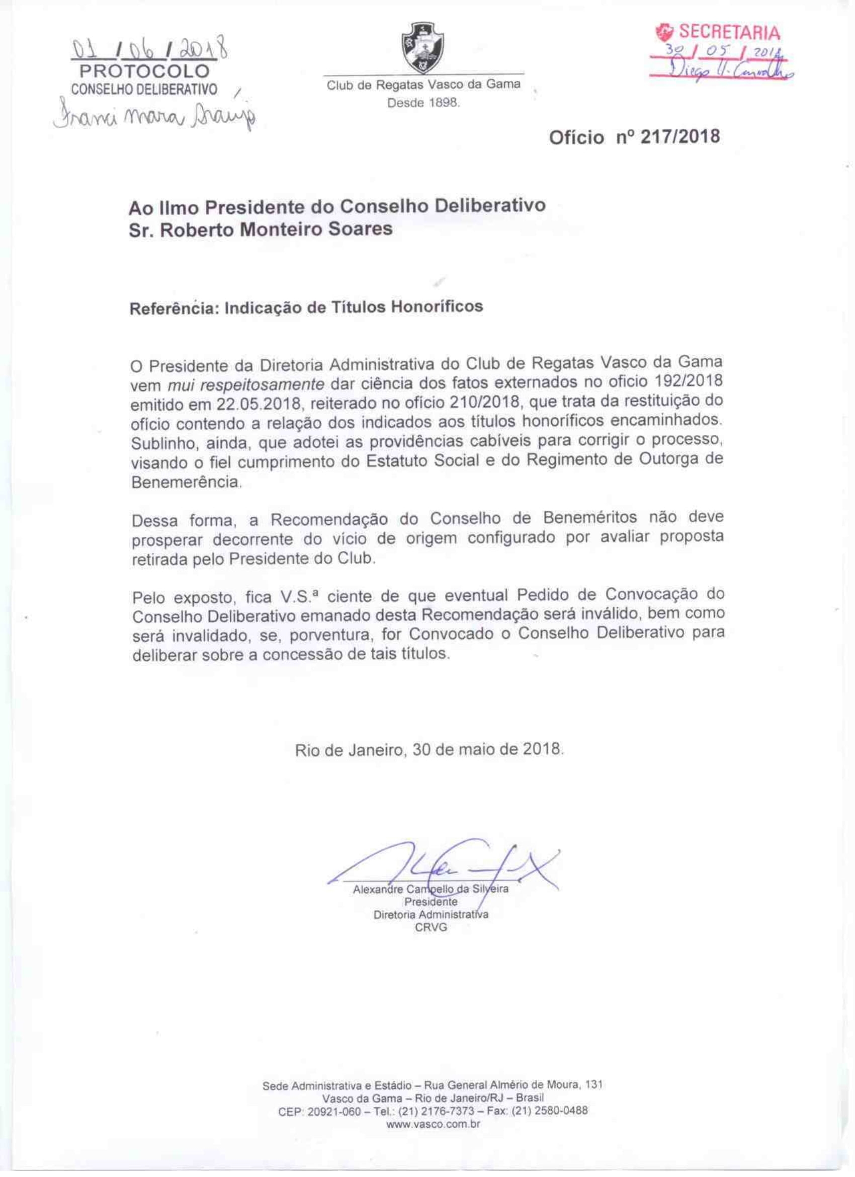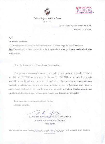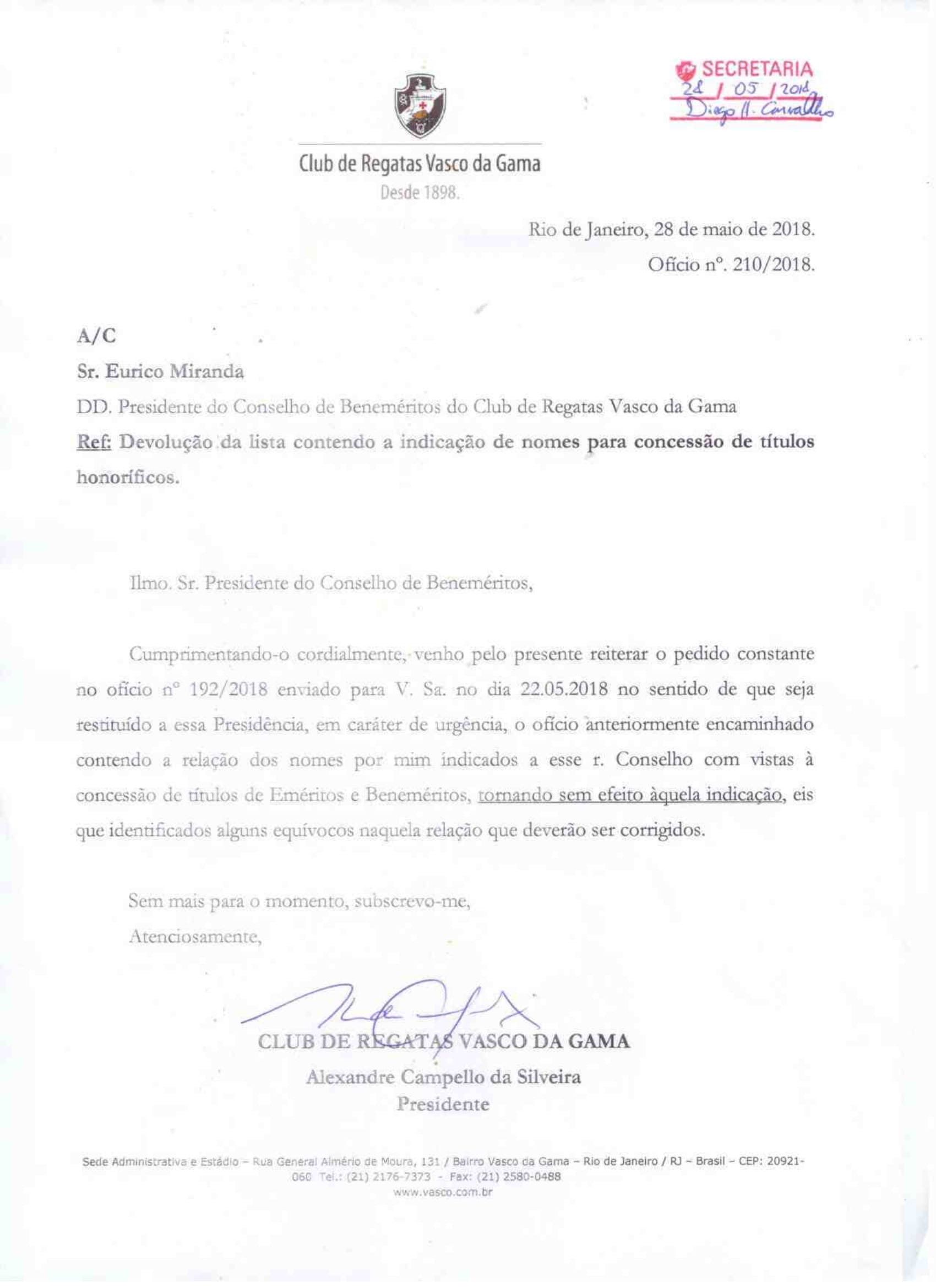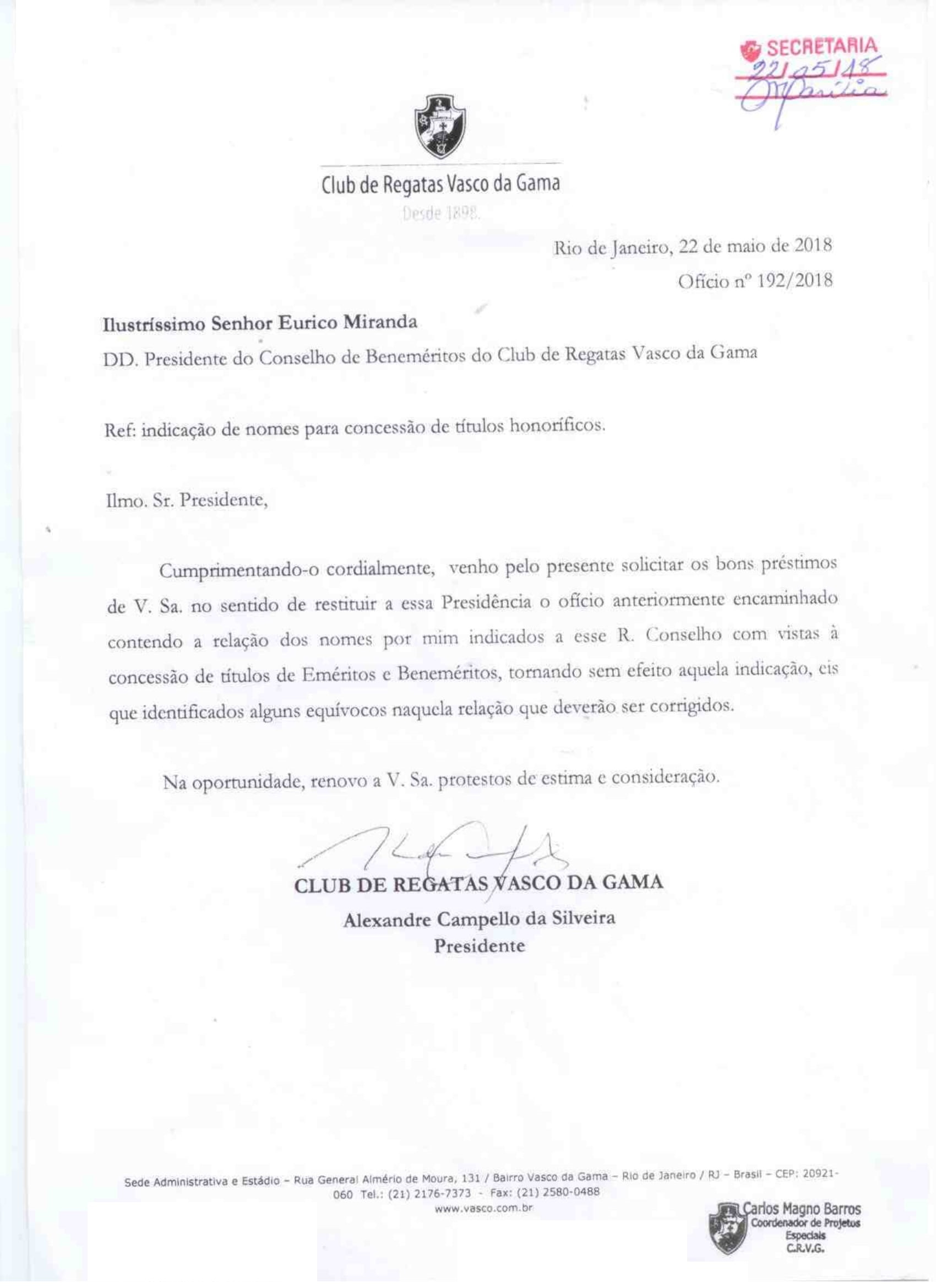 29/05/18 - Em reunião, Conselho de Beneméritos rejeitou nomes indicados por Campello, exceto os da Identidade Vasco