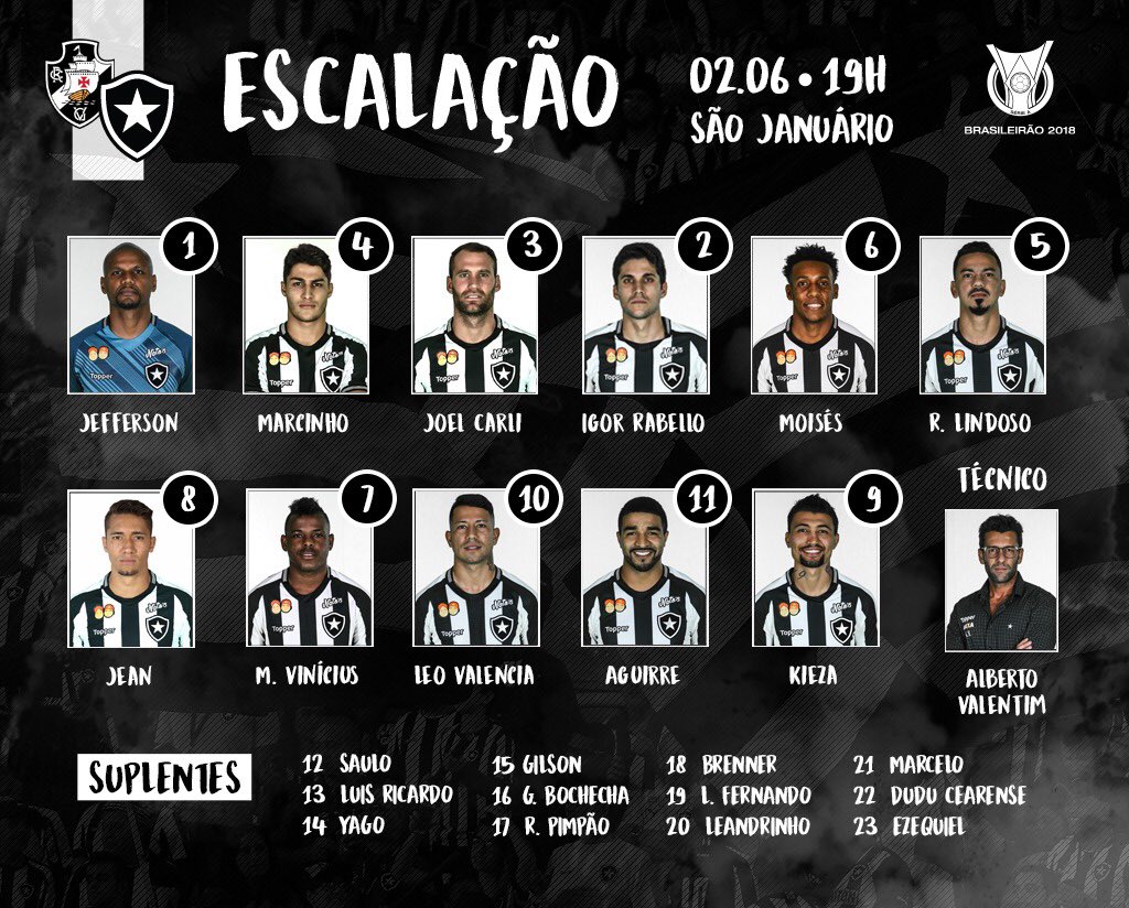 02/06/18 - Vasco divulga arte com os relacionados para o jogo contra o Botafogo; confira