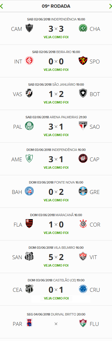 Ao fim da 9ª rodada, o Vasco terá um jogo a menos do que a maioria de seus adversários, pois o duelo contra o Santos só será realizado após a Copa do Mundo.