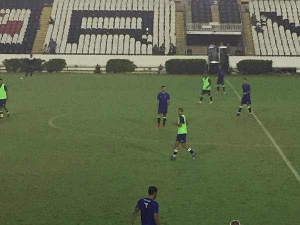 Novidade: volante Raul, de chuteira vermelha, participa da atividade. Aparentemente só reservas em campo #lanceVAS