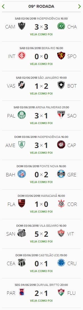O Gigante da Colina, no entanto, tem 1 jogo a menos do que a maioria dos participantes, pois seu duelo contra o Santos, fora de casa, válido pela 3ª rodada, só será realizado após a Copa do Mundo.