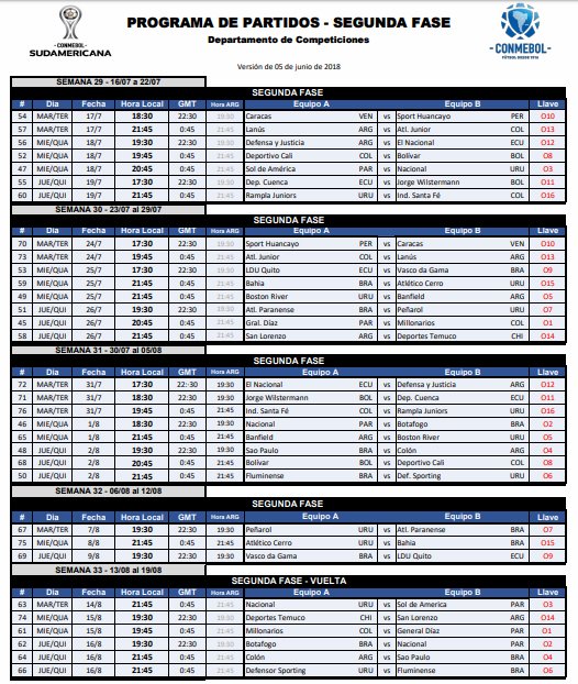 Programación de partidos de la Segunda Fase de la #CONMEBOLSudamericana.