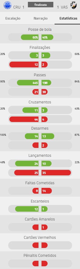 Confira estatísticas de Cruzeiro 1 x 1 Vasco