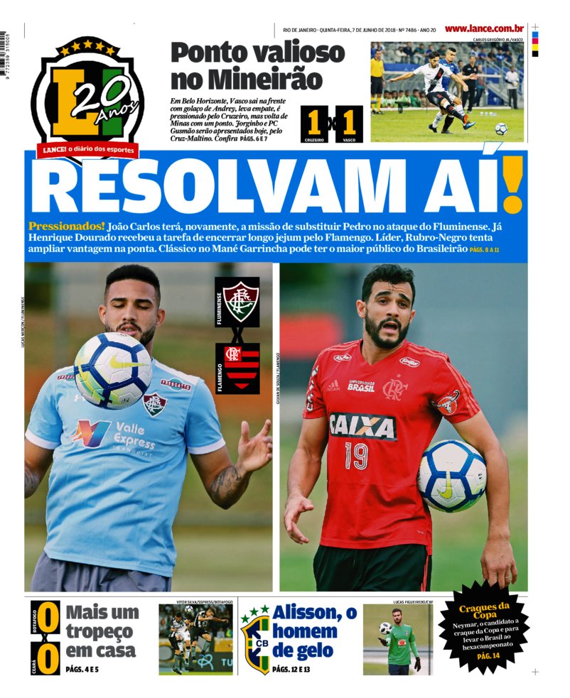 Veja como a imprensa destacou o empate do Vasco diante do Cruzeiro