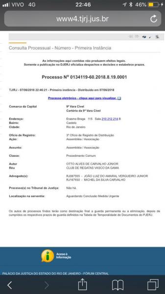 ATENÇÃO: Benemérito Otto Carvalho, membro do Conselho Fiscal do Vasco, entrou com ação hoje contra a indicação de títulos honoríficos aos seis nomes aprovados pelo Conselho de Beneméritos. Caso a ação seja acatada, a aprovação fica anulada