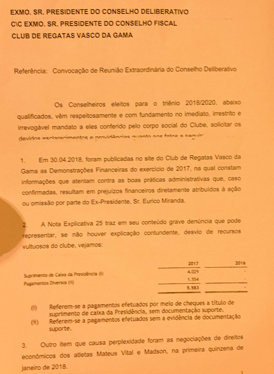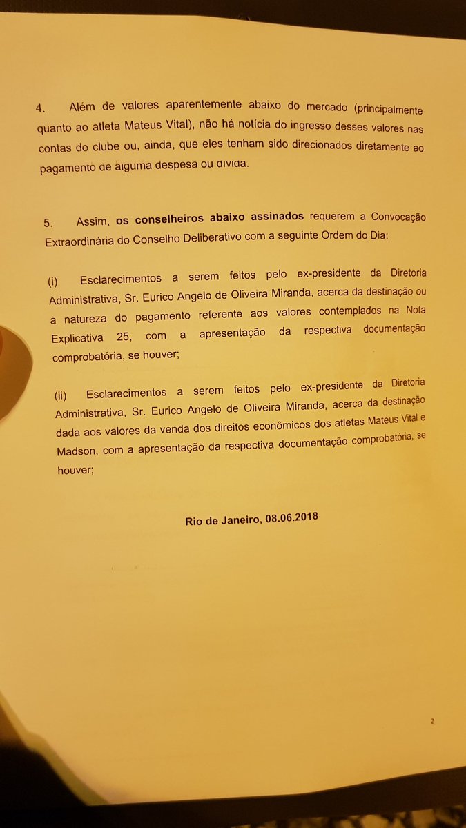 Julio Brant chegou para a reunião do Conselho. Ele irá colher assinaturas para que seja analisada a falta de comprovação de mais de R$ 5 milhões, além das vendas de Mateus Vital e Madson. #gevas