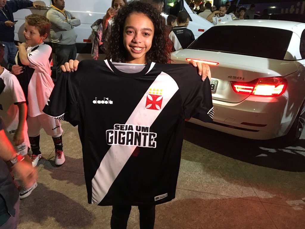 Paulão dá sua camisa de jogo a uma pequena torcedora do Vasco