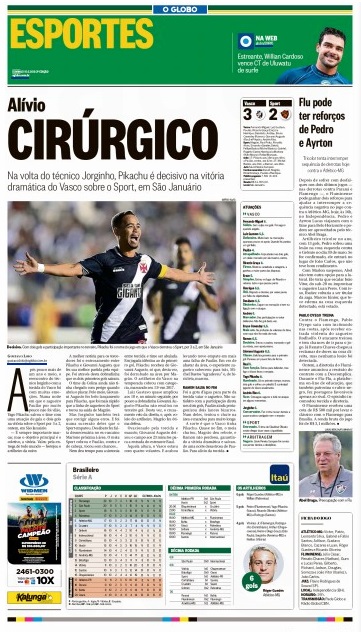 Veja como a imprensa destacou a vitória do Vasco sobre o Sport