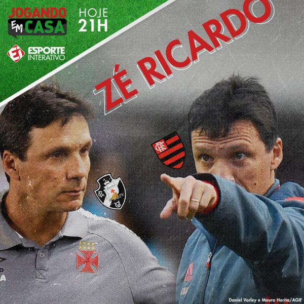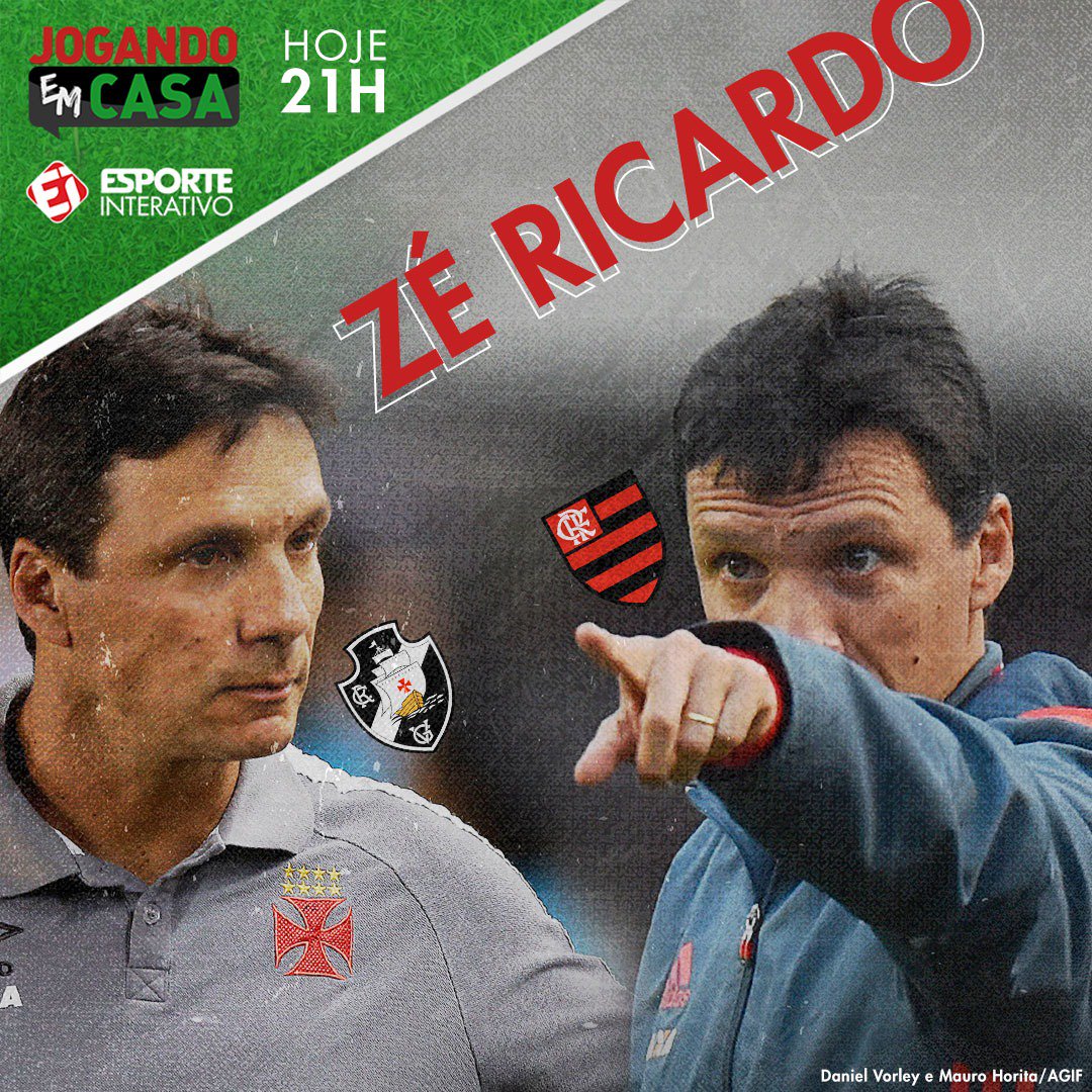 Amigos, hoje Zé Ricardo, ex-técnico de Vasco e Flamengo, estará na tela dos canais @Esp_Interativo ! Fique ligado no #JogandoemCasa