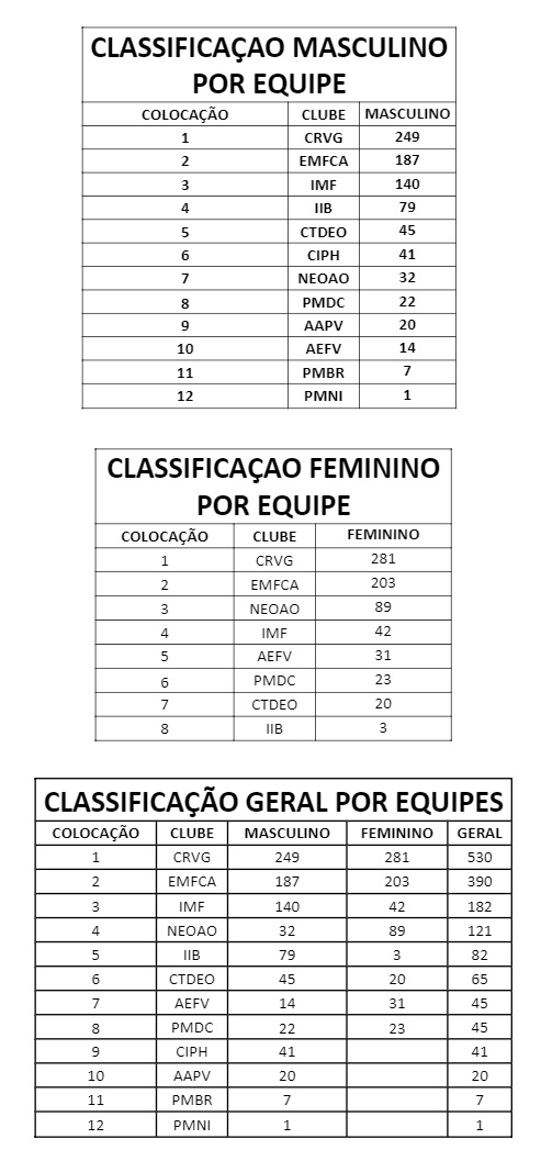 COLOCAÇÃO CLUBE MASCULINO FEMININO GERAL