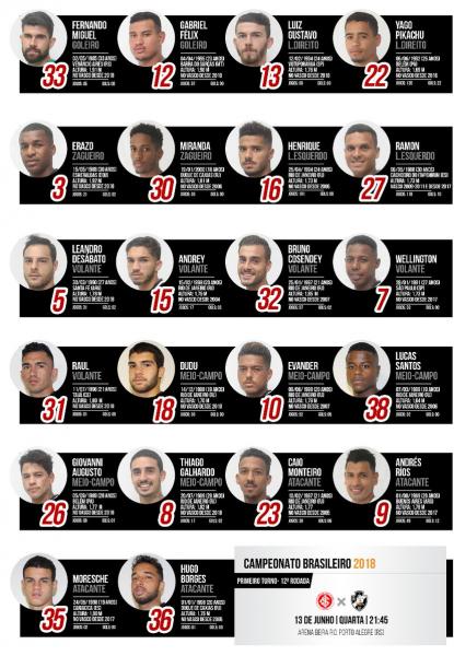 Vasco divulga arte com os relacionados para o jogo contra o Inter; confira