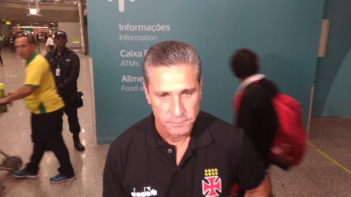 Jorginho acaba de desembarcar no Galeão. Falou em reforços pontuais e muito trabalho nessa paralisação para a Copa. Mas não revelou as posições. #gevas
