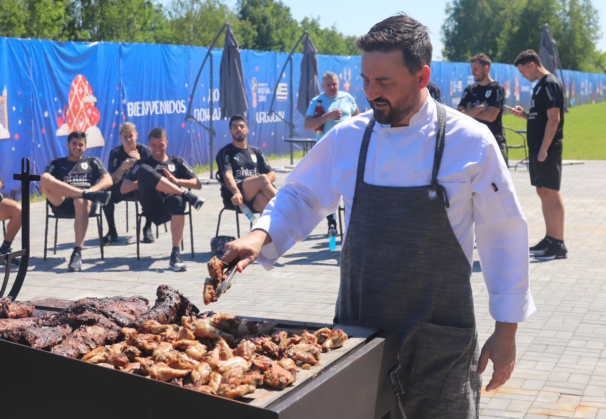 Martín Silva participa de churrasco após estreia vitoriosa do Uruguai na Copa do Mundo