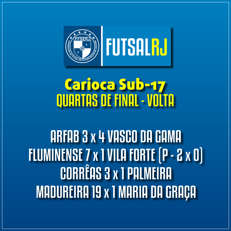 Três semifinalistas já foram definidos na categoria sub-11. O Securitários/Grau10 voltou a derrotar o Vital, desta vez dentro de casa, enquanto o Fluminense segurou empate com o Botafogo/Casa de España e se classificou por conta da vitória por 3 a 0 na ida. O Flamengo, que havia perdido no primeiro jogo, goleou o Corrêas no tempo regulamentar e na prorrogação e também se garantiu na próxima fase. Canto do Rio e Vasco fecham as quartas de final na terça-feira, às 19h30, em Niterói. Na ida, vitória cruzmaltina por 4 a 2.